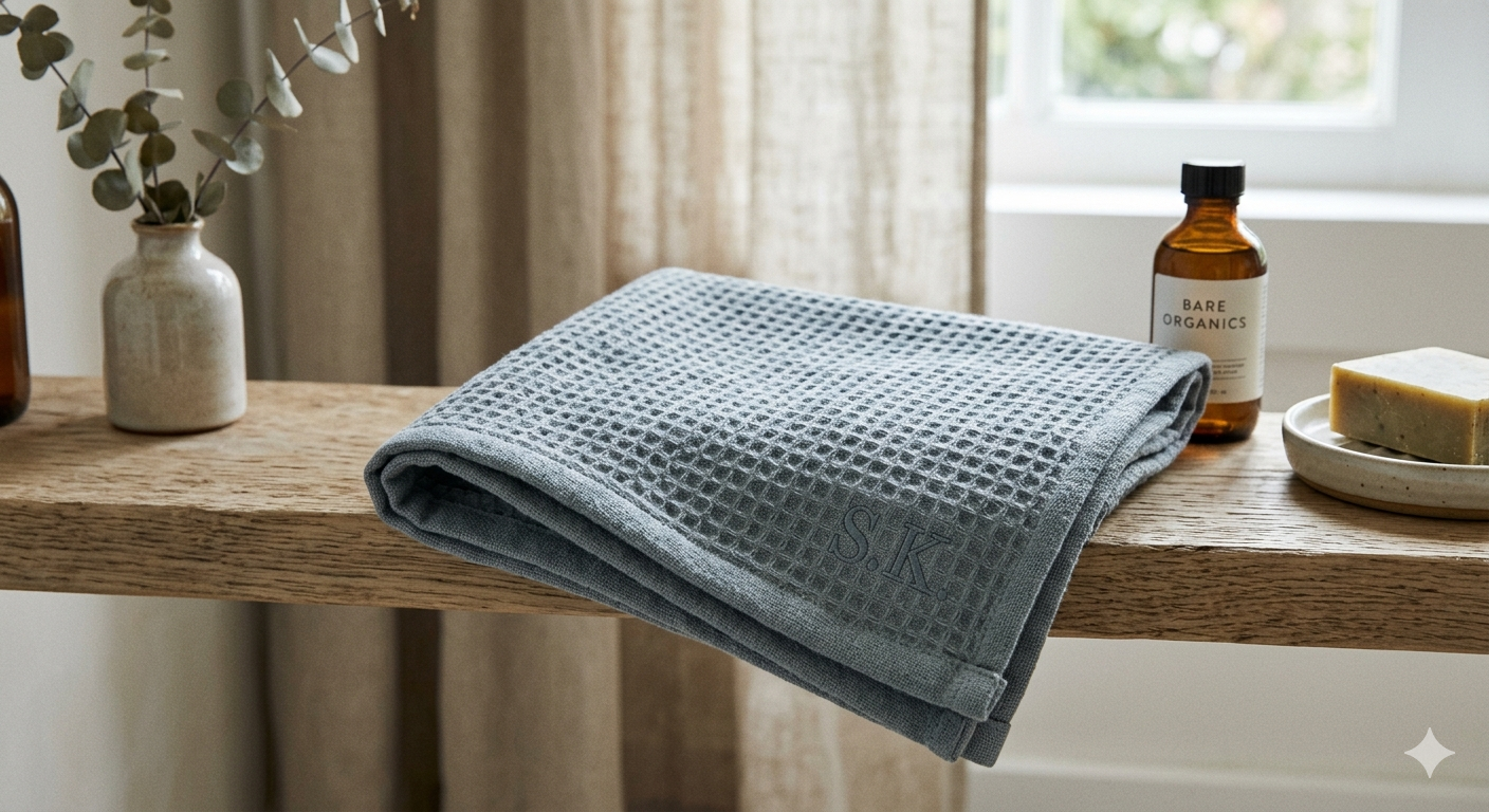 伊織×Landscape Products(日本)のコラボタオルは、麻80%・綿20%のワッフル織りに専用タグのみというミニマルな設計。価格は990円ながら、「使うほど柔らかく育つ」素材の特性がナチュラル志向の顧客に支持されている。